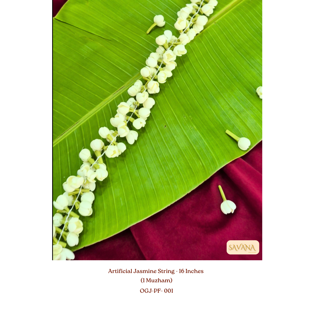 Beautiful and realistic jasmine strings (16 inches / 1 muzham) to complete your traditional look.