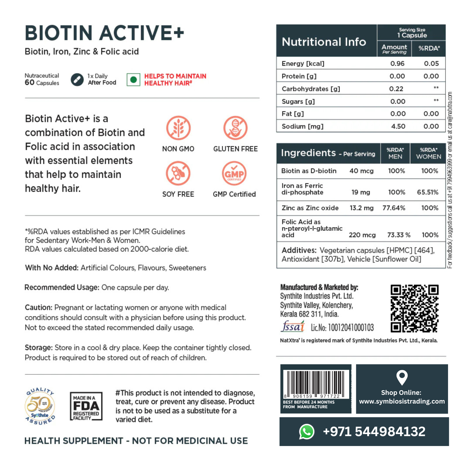 • Vegan Friendly: Biotin Active+ for enhanced hair health and growth.
