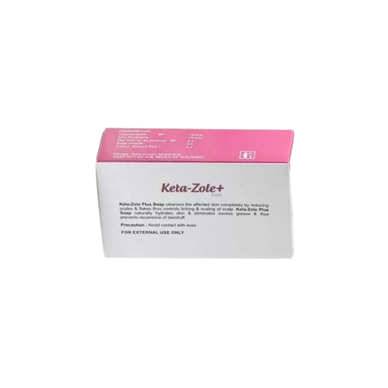 Keta-Zole Plus cleanses the affected skin completely by reducing scales and flakes thus controls itching and scaling of scalp. Keta-Zole Plus Soap naturally hydrates skin and eliminates excess grease and thus prevents recurrence of dandruff. Avoid contact with eyes.